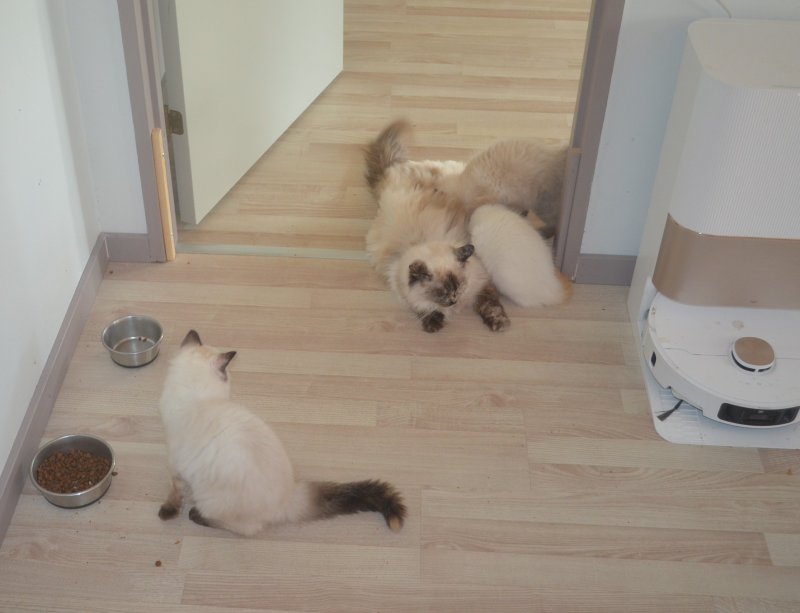 Ingen af vores katte - ej heller killinger - er interesseret i selve støvsugerrobotten.