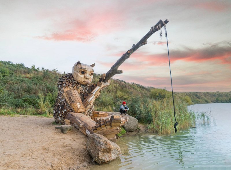 Kæmpetrolden "Runde Rie" er placeret ved en af søerne i nærheden af Roskilde Vest - Danmark.